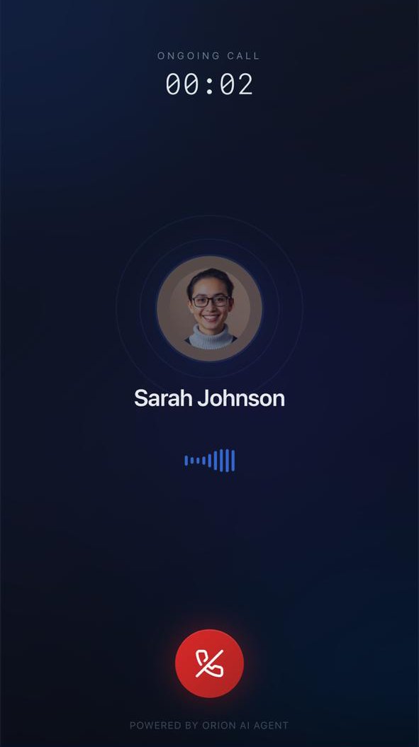 Voice is the most natural form of human communication and most businesses miss calls every single day. Orion changes that by operating as a full AI voice agent that handles inbound and outbound phone calls around the clock.